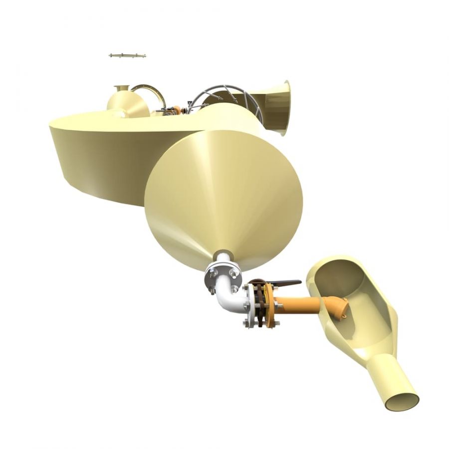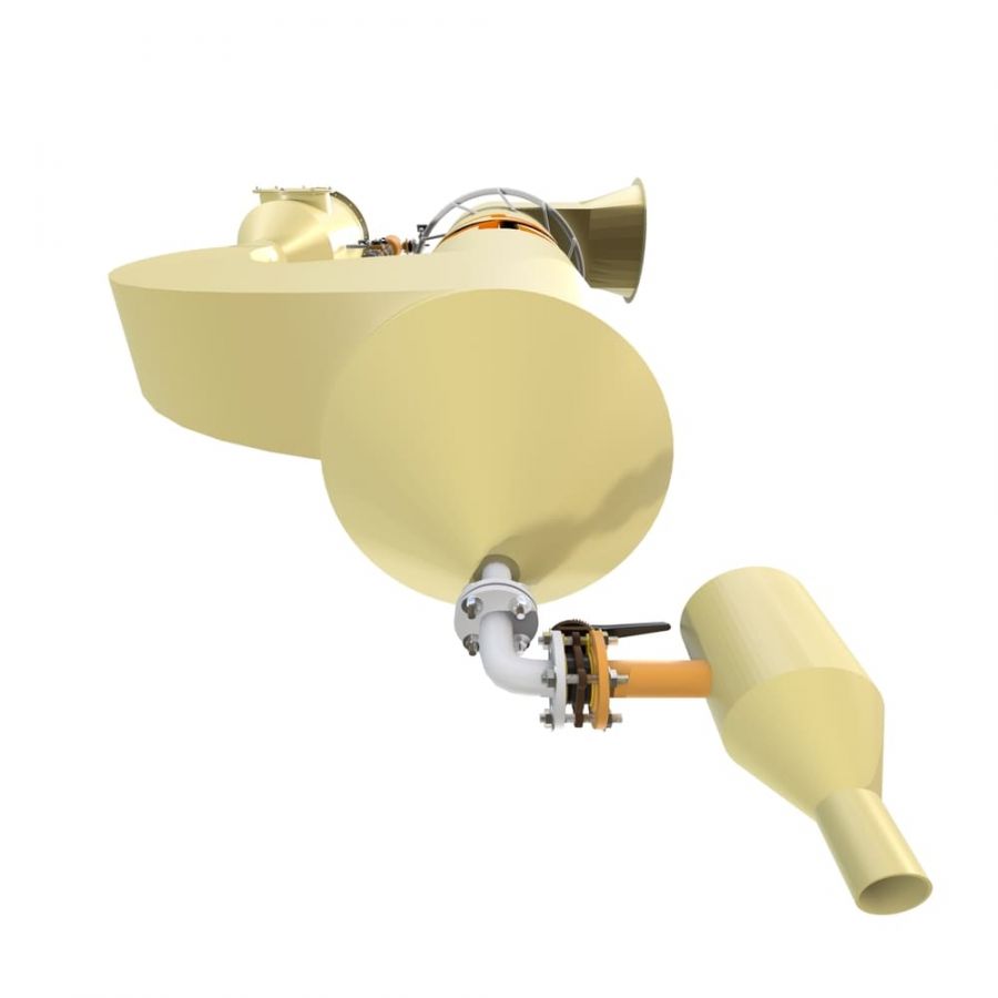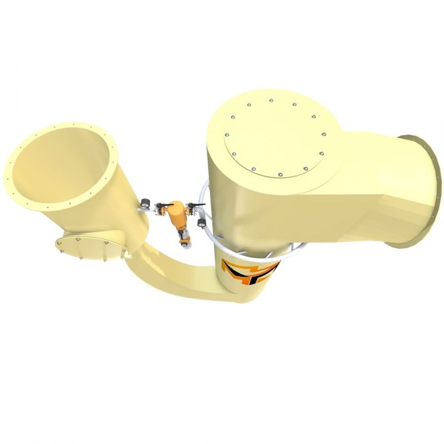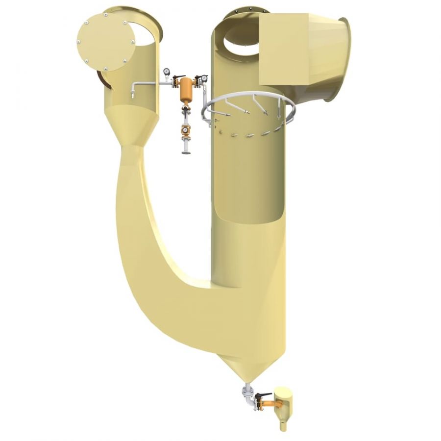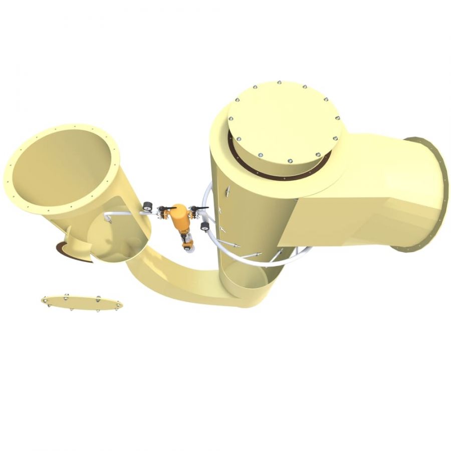 Газ с примесями подается во впускной патрубок скруббера, подвергается выравниванию потока.