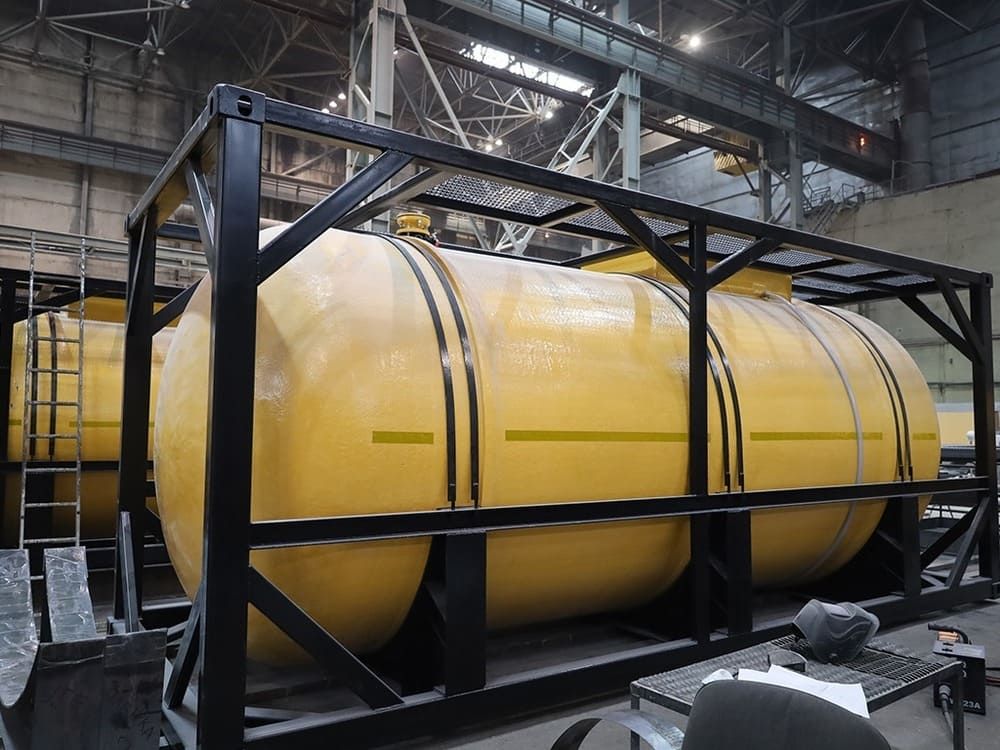 Танк-контейнер – это композитный транспортировочный модуль, стеклопластиковая цистерна, размещенная внутри жесткого металлического каркаса стандартных габаритов ISO-контейнера. Он предназначен для безопасной перевозки агрессивных жидкостей и химически активных веществ по автомобильным, железнодорожным и мультимодальным маршрутам.