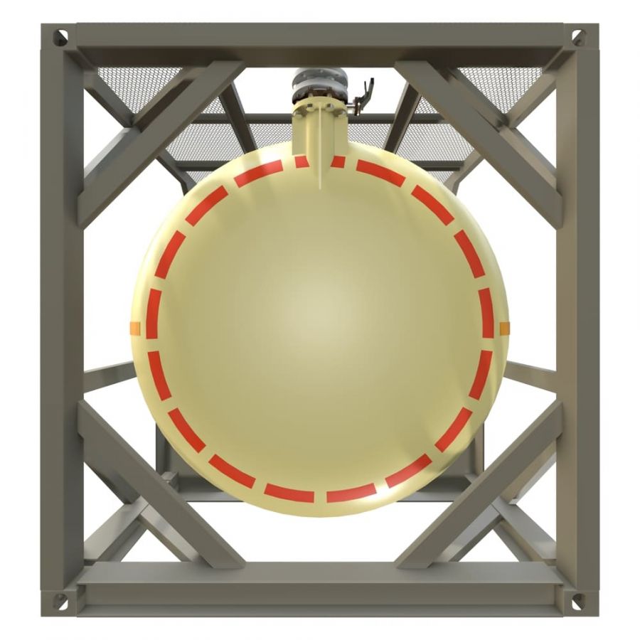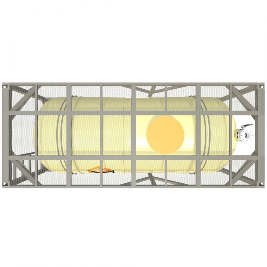 Внешний каркас соответствует стандартам ISO и обеспечивает защиту композитной оболочки, движение, крепление и транспортировку. Угловые фитинги, усиления, площадки обслуживания и лестницы могут быть вмонтированы по заказу.