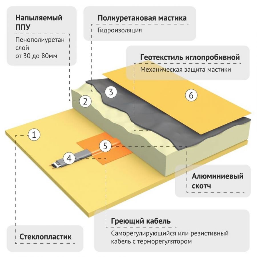 - Внешняя гидро- и УФ-защиту (оцинковка, мастика, геотекстиль);